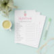 Set eine süße und tropische Stimmung für Ihre Babydusche mit diesem "Peach Pineaple Baby Shower Set"! Dieses Set mit pfirsichfarbenen Ananas mit goldgelben und blassgrünen Akzenten, rosa und graue Schriftzeichen ist frisch und zart. Das Set bietet Unterhaltungsspielmöglichkeiten für die Babydusche sowie Einladungen, die alle dem hellen, fruchtigen Thema entsprechen. Ideal für eine mädchenhafte, sommerliche Babydusche! Antworten 1.Flasche 2.Windeln 3.Badetuch 4.Thermometer 5.Blanket 6.Teddy 7.Brush 8.Play Pen 9.Socken 10.Crib 11.Schlaf 12.Hintern 13.Bonnet 14.Rubber Ducky 15.Teething Ring 16.Baby Swing 17.Sweater