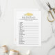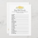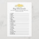 Ein lustiges Spiel für das Gender-Enthüllungs-Party ist das Baby Wort Rührei. Auf dieser Spielkarte befinden sich die gelben Blumen ganz oben. Auf der anderen Seite ist ein Teddybär, der sich auf ein Honigfass stützt und eine Honigbiene mit Vorlagen beobachtet.