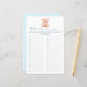 Eine charmante "Baby Items" Liste, ideal für Babyduschen. Oben verleiht ein süßer, teddyscher Bärensymbol ein Gefühl sanfter Wärme. Unterhalb des Bären steht der Titel in einem sanften, einladenden Schriftart, in dem die Eltern ihre Kenntnisse über Babyartikel vermitteln können. Ein großzügiger, von Bäumen gesäumter Bereich ermöglicht es den Gästen, Babyartikel zu schreiben, was für die Eltern, die noch auf der Suche nach einem Kind sind, niedlich ist. Diese Karte ist eine nachdenkliche Möglichkeit für Freunde und Familie, ihre Erfahrungen zu teilen und die neuen Eltern an Babyartikel zu erinnern, an die sie sich erinnern können.