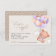 Fügen Sie Ihrer Babydusche mit diesen stilvollen und unvergesslichen Party eine persönliche Touch hinzu! Das Design bietet einen Babybär mit lila Ballons auf beigem Hintergrund.