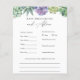 Babyduschberatung und Vorhersagekarte mit Aquarellgrün und lila Sukkulenten. Eine unterhaltsame Art, mit den Gästen während der Babydusche zu interagieren. Entspricht der Succulent Collection im Adore Paper Co Zazzle Shop.