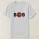 T - Shirt BABYBOOMER der Männer. Babyboomergeneration geboren zwischen 1946 und 1964. Das Symbol in der Mitte ist das generische internationale Friedenssymbol, das von der Antikriegs- und Friedensbewegung der Fünfzigerjahre und der Sechzigerjahre so verbunden sind mit der Babyboomergeneration abgeleitet wird