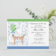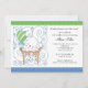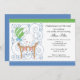 Niedliche Babybunny Baby Boy Dusche Einladung. Design zeigt den niedlichsten Babyjungen, der in einer Krippe mit blauem Bogen und grünem Stripe Ballon sonnig ist. Passende Briefmarke und Aufkleber in unserem Shop