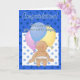 Cartoon Baby Junge und Ballons mit Polka Dot Hintergrund. Herzlichen Glückwunsch! Mit einem neuen Baby-Ding, das sich ändert... und füttre... und sich ändert... und füttre...