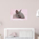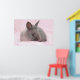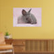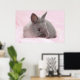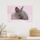 Ein Foto eines niedlichen blauen Kaninchens auf einem rosa Hintergrund