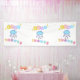 Dieses Banner enthält die Worte "Baby Shower" in einem einzigartigen Schriftart mit verschiedenen Farbbriefen mit einer Wolke und Regentropfen in diesem Sterne- und Tierthema. Dieses Banner hat einen Single-Seitendruck Außensafe Maßen 4"x12" mit eleganter matter Oberfläche und ist sowohl verblassen und reißen für Indoor oder Outdoor-Einsatz ideal für Werbung für alles, von Geburtstag bis Abschluss, Hochzeiten bis Jahrestag. Mit Metallgrommen können gezwirnte und thermisch geschweißte Kanten für feine Outdoor-Banner gekauft werden.