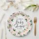 Babydusche Aquarellpinke, mädchenhafte Blumenschri Pappteller