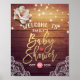Babydusche Begrüßungsschild Vorlagen - Elegantes Goldschrift, Vintage Blumen- und Streichleuchten mit Spitzen-Dekorationen auf rustikalem Holzhintergrund. Alle Textstile, Farben, Größen können an Ihre Bedürfnisse angepasst werden.