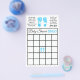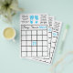 Blue baby Fußspuren Boys Baby Dusche Bingo Karte auf der einen Seite und die andere hat "Who Knows Mommy Best" Spiel.