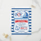 Das ist ein Junge! Nautic, Sailboat Thema Junge Dusche Einladung auf marineblau-blaue und weiße Streifen Muster. Das Segelschiff ist dunkel und hellblau, das auf dem Wasser des Ozeans segelt, das rote und weiße Leben und der blaue Anker des Bootes. Die Farben sind Scharlachrot, Königsblau, Weiß und Himmelblau. Vintage Klammer in Form einladen.