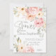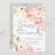 Rustikale und elegante Babydusche mit kaskadierendem Blumenstrauß aus sanften pastellfarbenen Rose, Peonies und Blättern in den Farbtönen Rosa, Blasspfirsich und Elfenbein, sanft grüne botanische Blätter und Eukalyptusgrün mit einem Hauch goldgefleckter Blätter und handgeschriebener Kalligrafie. Benutzen Sie unsere leicht anpassbare Vorlage, um Ihre Babydusche-Details zu personalisieren - die Rückseite ist ein reichhaltiges gedämpftes Grün mit einem wunderschönen Strauß passender Blume . ©Whimsical Artwork™