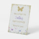 Ein Willkommensschild, das sich perfekt für eine Babydusche zum Schmetterlingsthema eignet. Dieses Design entspricht der Einladung hier: https://www.zazzle.com/butterfly_baby_shower_girl_purple_floral_baby_gold_holiday_card-256197153388738195