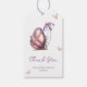 Adorable Babydusche Dank Geschenketiketten mit einer Illustration eines lila und rosa Schmetterlings mit einer empfindlichen Blume. Das Design hat auch Schmetterlingsformen in rosa Farben. In meinem Geschäft finden Sie koordinierte Produkte. Illustriert und entworfen von Patricia Alvarez.