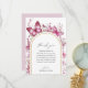 Eine Babyduschkarte mit Schmetterlingen, Blume und einem goldenen Bogen.