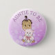 Niedliches Baby mit einem Teddybär, Tante zu sein, Babyduschknopf, lila.