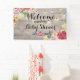 Baby / Brautparty Willkommensbanner. Vintage Aquarellblüte und elegante Streichleuchten auf rustikalem Holztexturhintergrund. Ein perfektes Design für Ihren großen Tag. Alle Textstile, Farben, Größen können an Ihre Bedürfnisse angepasst werden.