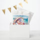Mädchendusche bevorzugt. Gemütliche Pastellrosa, Korallen, aquamarin, blau und goldfarbene Babydusche an der Küste. Ein kleines Mädchen schlafend in einer Weile und Gold Muschel. Hübsche skurrile tropische Blume. Seepferd in Aquarellfarbe, Sand Dollar, tropische Blume und Seesterne.