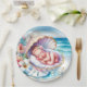 Girl's Baby Shower Teller. Gemütliche Pastellrosa, Korallen, aquamarin, blau und goldfarbene Babydusche an der Küste. Ein kleines Mädchen schlafend in einer Weile und Gold Muschel. Hübsche skurrile tropische Blume. Seepferd in Aquarellfarbe, Sand Dollar, tropische Blume und Seesterne.