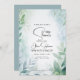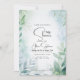 Aquarellfoliage in staubblauen Farbtönen und Grüntönen mit QR-Code auf der Rückseite - Benutzen Sie unsere leicht anpassbare Vorlage, um Ihre Babydusche-Details zu personalisieren - die Rückseite ist eine abgestimmte Abbildung mit Ai, #generativecontent art Created by ©WhimsicalArtwork™ Dieses Bild ist Teil einer kompletten Hochzeitsstationery Suite mit passender Hochzeit, Babydusche und andere Eventeinrichtung.