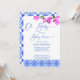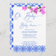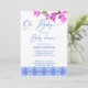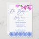 Oh Baby Französisch blauen Bougainvillea Baby Dusche Einladung Sofortdownload, blau mediterrane Fliesen, blaues modernes lässiges Drehbuch, blau und rosa Einladung.