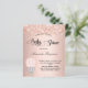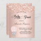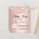 Für eine Babydusche, Feiern eines kleinen Mädchens. Ein rot, Rose Gold Imitate metallisch aussehen Hintergrund. Dekoriert mit Imitaten Glitzer Staub, und ein niedliches kleines Elefantenmädchen in einem Heißluftballon. Personalisieren und fügen Sie den Namen der Mutter zu sein Name und Party Details. Der Name und der Text: Baby Shower sind mit einem handgeschriebenen Schrift geschrieben 1 Blatt = 1 Einladung, mit Druckkante bis zum Rand