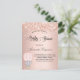 Für eine Babydusche, Feiern eines kleinen Mädchens. Ein rot, Rose Gold Imitate metallisch aussehen Hintergrund. Dekoriert mit Imitaten Glitzer Staub, und ein niedliches kleines Elefantenmädchen in einem Heißluftballon. Personalisieren und fügen Sie den Namen der Mutter zu sein Name und Party Details. Der Name und der Text: Baby Shower wird mit einem handgeschriebenen Stift geschrieben