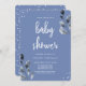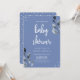 Elegante blaue Babydusche mit stilvoller Typografie und liebevollen botanischen Elementen.
