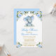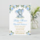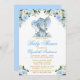 Babydusche Elephant Bow Blue Floral Gold Einladung