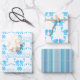 Das Set mit einem Blatt mit blauen Elefanten und Ballons und "It’s A Boy" in blauer Schrift, einem Blatt mit niedlichen blauen Elefanten und einem Blatt mit koordinierenden blauen Streifen macht die Babydusche besonders.
