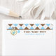 Babydusche-Adressetiketten mit einer obersten blauen und braunen Raute mit braunem Schnitt. Blaues Button, das an den Rand und die Kreisform mit einem blauen Kinderwagen befestigt ist. Personalisieren Sie den Text mit Ihrem Namen und Ihrer Adresse.