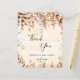 Eine Babydusche danke Karte. Ein goldfarbener Hintergrund mit goldenem Eukalyptus und Imitaten goldenen Glitzer Glitzern. Vor dem großen schwarz gefärbten handgeschriebenen Skript und den Text: Danke, Ihr Text, Titel und ein Datum. Zurück: Personalisieren Sie Ihre Dankeschön Notiz und Name.