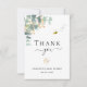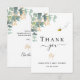 Eine moderne und elegante Babydusche, die sich durch eine Karte auszeichnet. Ein schick weißer Hintergrund. Dekoriert mit grünen Aquarellen Eukalyptusbäumen, Blätter, Grünpflanzen und einem Imitat goldenen Kragen. Eine niedlich glückliche Hummel, die lächelt. Schwarzer Text. Auf der Vorderseite den Text: Danke, Name und ein Datum. Zurück: Vorlage für Ihren Dank Notiz und Name.