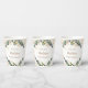 Für eine elegante Babydusche, geschlechtsneutral. Ein weißer Hintergrund. Auf der Vorderseite und auf der Rückseite: Personalisieren und fügen Sie einen Namen, Alter und ein Datum. Dekoriert mit Eukalyptusgrün und Imitaten Glitzer Staub.