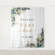 Ein schick weißer Hintergrund. Dekoriert mit grünen Aquarellen Eukalyptusbäumen, Blätter, Grünpflanzen und vergoldeten Imitaten. Personalisieren und fügen Sie den Namen der Mutter zu sein und ein Datum. Schwarze und goldene Buchstaben. Kann als Begrüßungsbanner für die Babydusche, als Party-Wanddekoration oder als Foto-Kabine verwendet werden.