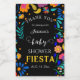 Ein buntes Blumenwaschetikett mit Party-Miniflasche und mexikanischem Fiesta-Blumendesign. Dieses Baby Dusche Mini-Flasche Wein-Etikett, dass mit Ihren Informationen personalisiert sein kann.