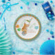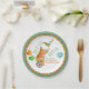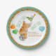 Niedliche whimsical Aquarell unisex Tiere Fahrrad Rhino Baby Dusche Papier Teller. Fügen Sie Ihren eigenen Namen für ein niedliches personalisiertes Baby Dusche Party Buffet. Weiche Aquarellbraun Rhinozeros fahren ein Einrad in den Herbsttönen braun, grün, orange, lila und aqua. Personalisieren Sie mit Ihrer Mutter, um Name und Wortlaut zu sein. Einzigartiger Elefantenzirkus im skurrilen Stil, Aquarellmalerei und Design von Sarah Trett. www.sarahtrett.com für www.mylittleeden.com