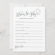 Diese Personalisierten Wünsche für Babykarten sind ein lustiges Spiel, um an Ihrer Babydusche zu spielen und um Ihre Schwangerschaftsreise so angenehm wie möglich zu gestalten. Diese Babyvorhersagen zeichnen sich durch einen modernen Schriftart aus, der perfekt für ein kleines Mädchen, einen Jungen oder eine Überraschung ist! Finden Sie passende Einladungen und Babydusche-Spiele in meinem Shop.