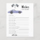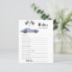 Race Car Thema Baby Dusche Einladungskarte mit Aquarellbildern eines lila (violetten) Vintage Autos und schwarz - weiß Rennen Flagge. "Renn um eine Babydusche."
