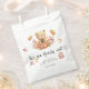"Wir können frühzeitig warten". Feiern Sie mit diesem Teddy Bären Thema Baby Dusche Party! Der niedliche Teddybär mit einem Herbstkürbis in seinen Pfoten sitzt im Herbstwald.