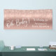 Ein elegantes und glamouröses Begrüßungsbanner für Ihre Babydusche mit Rose-Gold-Imitat-Glitzer, der von oben tropft und "Oh Baby!" in einem stylischen weißen Skript vor einem goldenen Hintergrund der Rose. Man kann leicht den Namen der Mutter, die man sein soll, personalisieren.