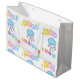 Diese Geschenktüte enthält die Worte "Baby Shower" in einem einzigartigen Schriftart mit verschiedenen Farbbriefen mit einer Wolke und Regentropfen in diesem Sterne- und Tierthema. Alle Geschenktaschen werden mit hochwertigem Papier für extra Dauerhaftigkeit gefertigt und Ihre Auswahl an matt oder glänzend lackiert in 3 zusätzlichen Größen, ideal für Babyduschen, Hochzeiten oder Jubiläen.
