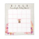 Woodland Thema, Baby Dusche Bingo Spiel für boho Baby Mädchen. Waldtier umfasst einen freien, weltraumorientierten Bären. Helle, farbenfrohe Blumen für den Herbst. Regeln für das Spiel: Jeder Spieler schreibt auf den Plätzen auf, was er von seiner Mutter erwartet, dass sie bekommt. Da die Geschenke entpackt sind, überqueren die Gäste sie.