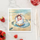 Jungs Baby-Dusche Papier Teller. Gemütliche, pastellbraune und blaue Babydusche an der Küste. Ein kleiner Baby, der in einer weißen und goldenen Muschel schläft.