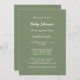 Baby Shower Minimalistisch Sage Green Invitation, leicht zu personalisieren mit der Online-Personalisierung Vorlage vor der Bestellung. Die Einladung enthält stylischen weißen Text auf einem grünen Hintergrund. Nach der Personalisierung des Textes, dann wenn Sie weitere Anpassungen, wie zum Beispiel das Anpassen des Layouts, wünschen, scrollen Sie bitte in der Personalisierungsvorlage nach unten und klicken Sie auf "Bearbeiten mit dem Design-Tool", um "weiter anpassen" vor der Bestellung.