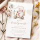 Bearly wait Girl Dusche Einladung zeigt eine Aquarellfarbe eines weißen Teddy Bären reiten einen Roller mit einer eleganten Skriptart Behandlung mit dem Sprichwort "wir können fast warten". Passen Sie diese Vorlage einfach mit Ihren Ereignisdetails an. Eine zauberhafte Frühlings- oder Sommerveranstaltung - perfekt für Ihre Veranstaltung! Dieses niedliche Teddybärdesign gehört zur Kollektion "Bearly Wait Vintag Scooter".