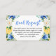 Diese hübsche und elegante Buchungsanfrage-Umschließkarte bietet Aquarellblau, Gelb und Weiß mit Blattwerk. Die Blume sind in verschiedenen Farben gehalten. Der Text kombiniert handgeschriebene Skript- und Serif-Schriftart für ein stilvolles und modernes Aussehen. Das ist perfekt für einen Frühling oder Sommer rustikale Babydusche.