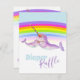 Handgemalte Narwal und Jungtier mit farbenprächtigen grafischen Regenbogen, Baby Dusche Windelkarten. Ideal, um Windeln oder Windeln anzufordern, damit Sie verschiedene Typen probieren und entscheiden können, welchen Typ Sie bevorzugen und Ihr Gast kann auch bei Ihrer Babydusche Preise gewinnen. Whimsical Hand Aquarellmalerei und grafische Regenbogenkunst und Design von Sarah Trett für www.mylittleeden.com nur auf Zazzle.