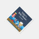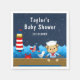 Diese niedliche und unterhaltsame Serviette verfügt über einen Seemann-Junge-Affen auf einem Holzdeck mit einer Möwe und einer Krabbe. Im Hintergrund befindet sich ein roter und weißer Leuchtturm, ein niedlicher Vogel auf einem Segelboot, Meereswellen und ein marineblauer Sternenhimmel. Der Text verbindet fett- und serifenlose Schriftart für ein stilvolles und modernes Aussehen. Das ist ideal für eine Babydusche zum Thema Wassersport.