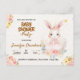 Niedlich rosa Hase auf dieser Baby Dusche Einladung. Rosa Blume und sonnig. Text ist bearbeitbar.