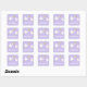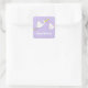 Niedliche Babyduschaufkleber mit einer Cartoon-Abbildung eines Storches, der ein Baby liefert. In lila und weißen Farbtönen ist es geschlechtsneutral, also ideal für einen kleinen Jungen oder ein Mädchen.